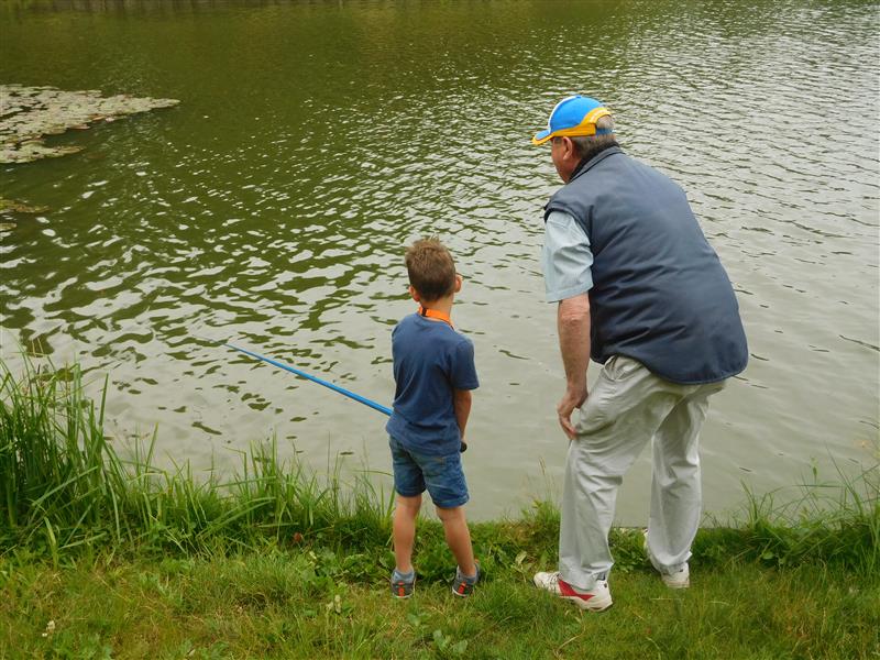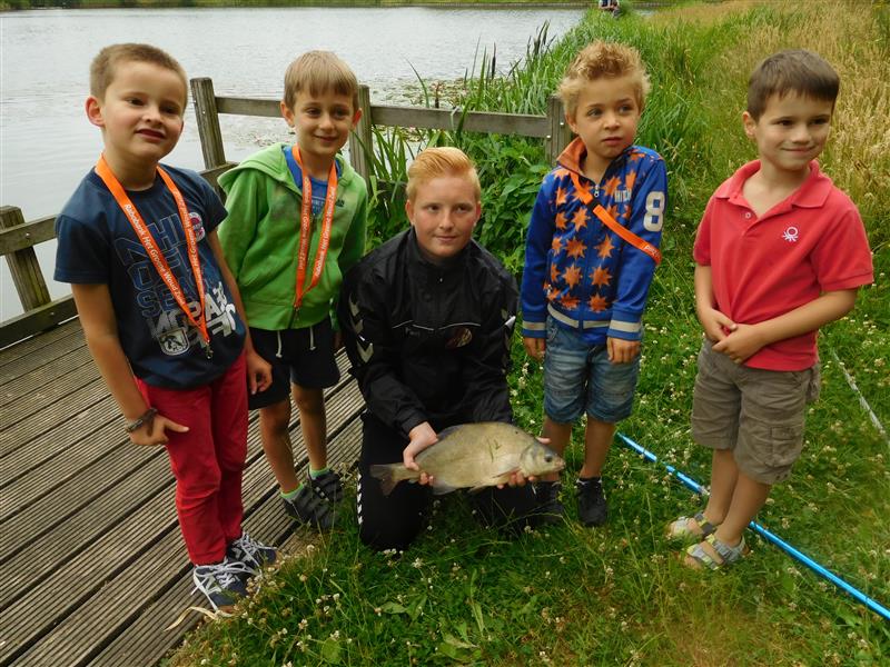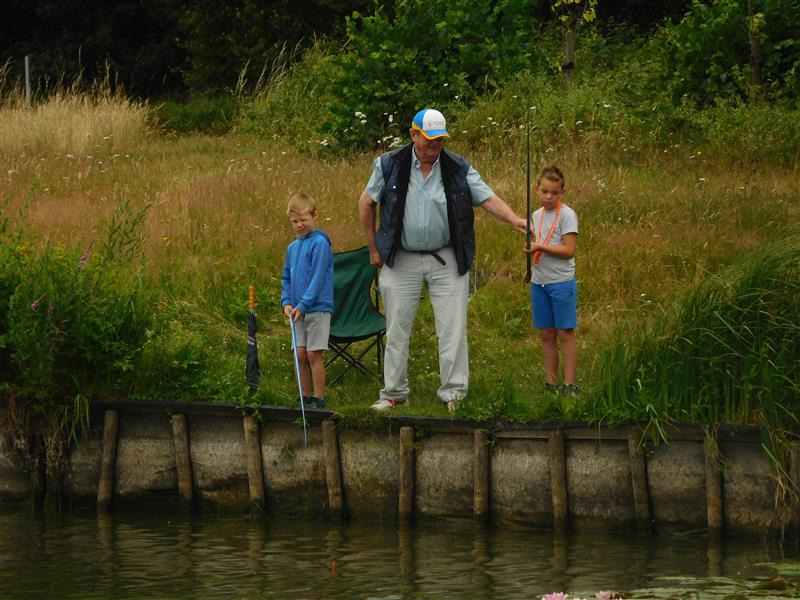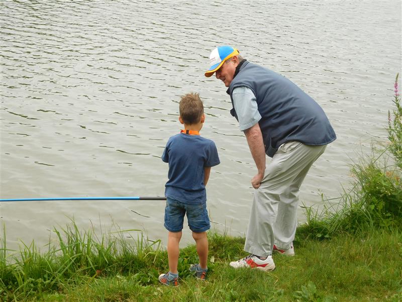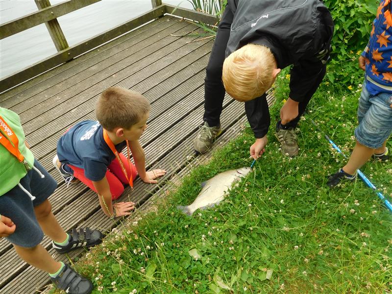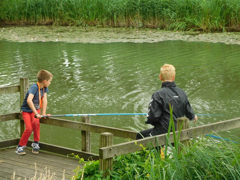 We krijgen verdeeld over de dag 9 groepjes kinderen die een uurtje onder begeleiding aan onze vijver komen vissen.